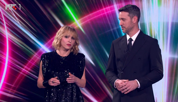 I večeras je stajling vrlo jasno posložen. Ćurlić i Vukušić ostali su vjerni klasičnim crnim odijelima, dok su voditeljice odabrale šljokičaste haljine koje pod svjetlima pozornice odmah dolaze do izražaja i daju večeri malo više sjaja.