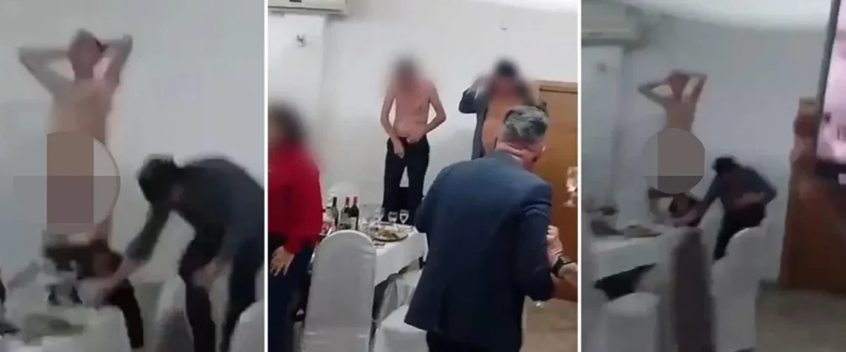 Na snimku koji su objavili skoro svi hrvatski mediji vide se muškarci na stolicama i stolovima, a jedan od njih je u jednom momentu svukao pantalone, a zatim u donji veš, bez trunke blama i zadrške.