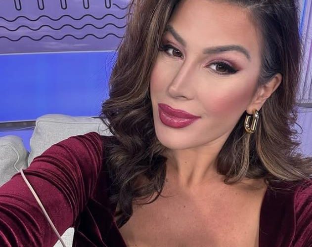 Voditeljka je sedela na plaži, na sebi je imala pantalone, belu raskopčanu košulju, naočare za sunce, a uživala je dok je ispijala koktel.