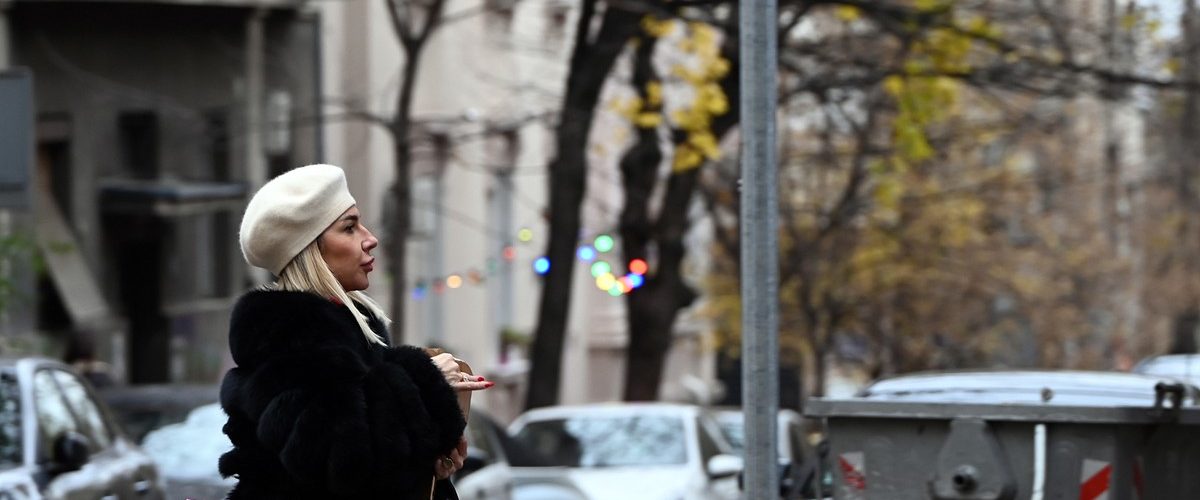 Voditeljka je na sebi imala crnu bundu i bež kapu na glavi dok je uz to obula crne čizme na štiklu.