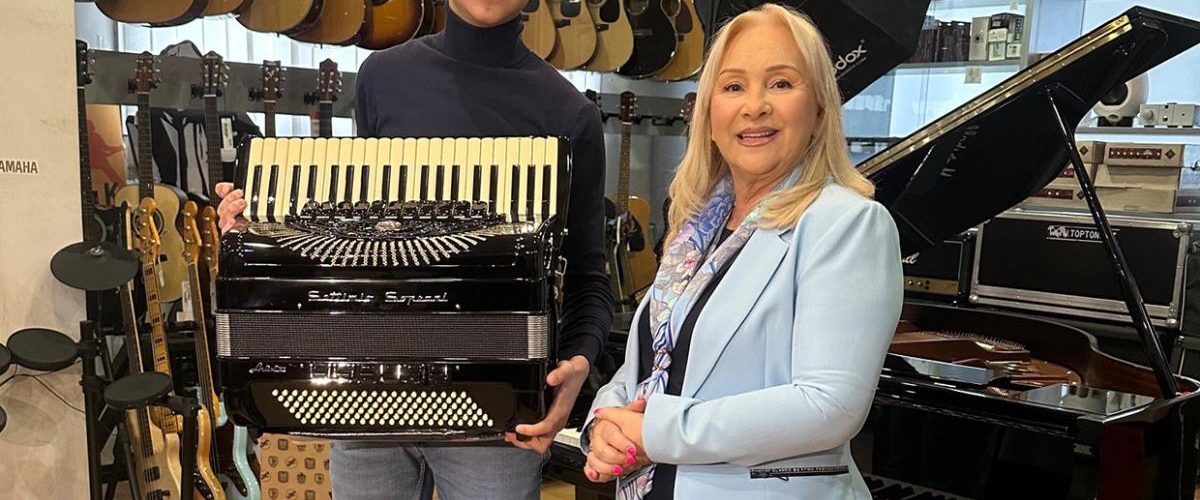 – Meni je posebno zadovoljstvo što smo mesec i po dana od koncerta uspeli da dopremimo ovu harmoniku koja se inače duže čekala. Zadovoljstvo mi je što ovom dečku mogu danas to da predam. Želim mu da dobije slavu onoliko bar koliko je moj muž imao, a sa upornim radom i talentom, verujem da će nadmašiti i mnoge harmonikaše. Zadovoljstvo mi je i emotivna sam danas, posebno što imam priliku da pre nego što smo očekivali uručimo intrument. Pokloni i donacije su dati i muzičkoj školi i devojci u Njujorku, ali ovo je nešto što lično mogu da mu dam. Nadam se da ćeš biti zadovoljan, srećan, da te dobro služi. A mi smo tu, Bože zdravlja, opet da pomognemo ako možemo.