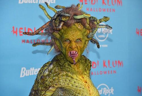 Hajdi se ove godine maskirala u Meduzu, dok je njezin suprug došao prerušen u skamenjenog vojnika. Ručno oslikani kostim manekenke isticao se zelenim krljuštima koje su se protezale u dugi rep, a na glavi je imala replike zmija umesto kose. Hajdi je imala i oslikano lice, na kom su se isticali šiljati zubi i dugi jezik.