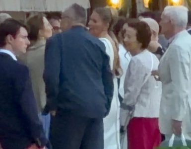 Dizajnerku je naša ekipa usnimila ispred restorana kako neformalno ćaskaju sa gostima, a u jednom trenutku pažnju svih je privukao ples mladoženje.