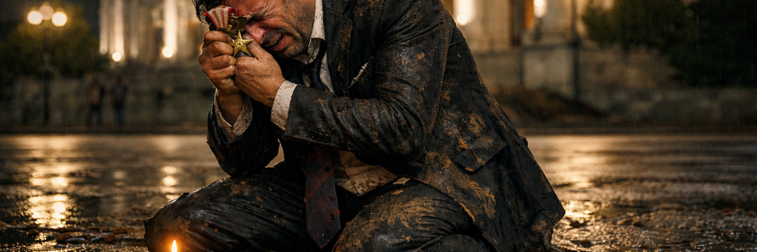 Te večeri, dok je grad spremno očekivao njegov trijumfalni govor, Nikola je pronađen na trotoaru gde je njegov otac prosio – u blatu, klečeći, stežući stari orden i jecajući pred sivim nebom Beograda. Njegova karijera, bogatstvo i ponos pretvorili su se u pepeo laži. Svi njegovi “prijatelji” i savetnici ostavili su ga samog, kao da i oni osećaju težinu njegovog pada.