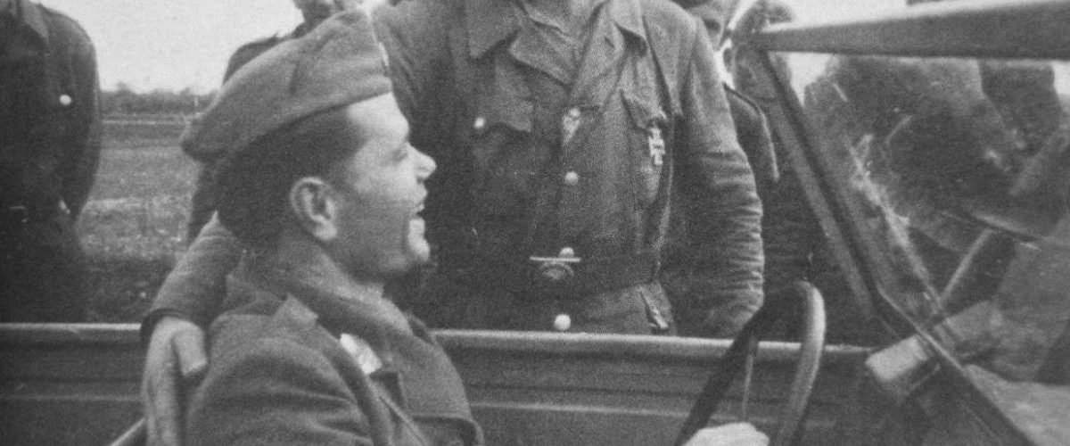 Rafael Boban pored oklopnog automobila Crne legije, u okolini Prozora, mart 1943. Foto: Wikipedia – Javno vlasništvo
