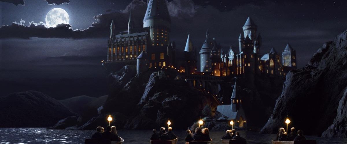 Na slici se mladi čarobnjak Hari vidi s leđa u Hogvortsu (Dominik Meklaflin) dok prilazi terenu za kvidič u grifindorskom ogrtaču i sa metlom u ruci, po snežnom danu, dok se u pozadini vide i drugi učenici.