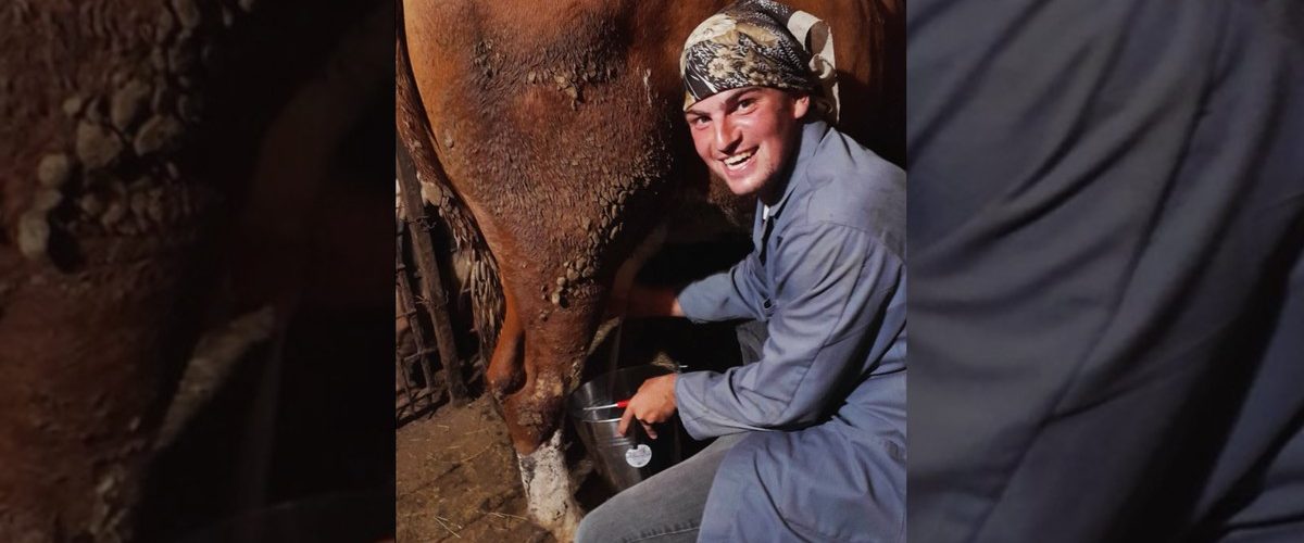 Luka Crepuljarević muze kravu