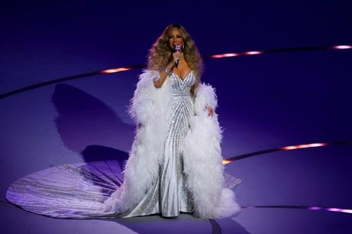 Pevačka diva Maraja Keri je nastupila u raskošnoj beloj haljini i ogrtaču od perja iz radionice Roberta Kavalija, ali najveću pažnju privukla je njena kolekcija nakita – čak 306 karata dijamanata, čija se vrednost procenjuje na oko 15 miliona dolara.