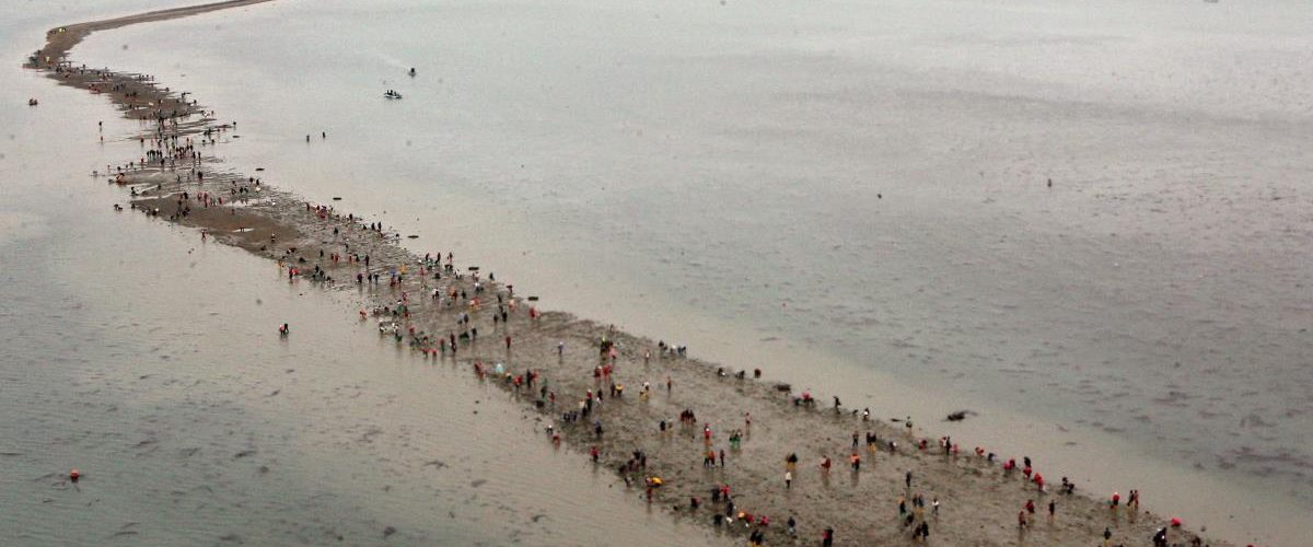 U moru kod Džinda ono što izgleda kao razdvajanje vode zapravo je spuštanje čitavog nivoa mora, čime se otkriva greben kopna širok između 40 i 60 metara, koji tokom festivala svakodnevno izranja na površinu.
