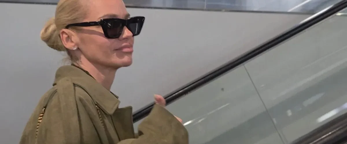 Nataša je sletela na aerodrom u opuštenom izdanju. Nosila je zelenu jaknu i zvonaste farmerice i nosila je naočare.