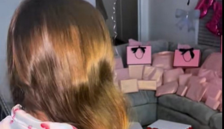 Majka je na TikToku objavila snimak dnevne sobe prepune ružičastih, pažljivo umotanih poklona. Pokloni su prekrili ceo kauč, svuda su se videle pink kese i veliki rođendanski baloni, a u uglu je stajala ogromna torta ukrašena tijarom. Plafon je bio ispunjen balonima, a najviše pažnje privukao je luksuzni kalendar brenda „P. Louise beauty“, koji košta čak 285 evra.