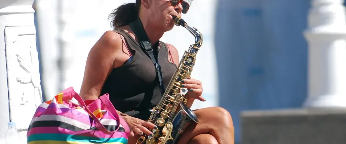 Zagreb: Djevojka saksofonom zabavlja prolaznike, ilustracija |