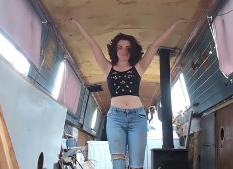 Obnova je obuhvatala nove podove i zidove, novu kuhinju, krevet sa prostorom za odlaganje stvari, kao i renoviranu peć na drva. Proces renoviranja redovno deli na TikToku, gde je okupila više od 31.000 pratilaca.
