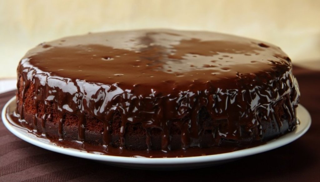 Izvadite tortu iz šerpe, skinite pek papir i okrenite na tacnu naopako. Otopite mlečnu čokoladu sa slatkom pavlakom, malo prohladite i premažite tortu glazurom.