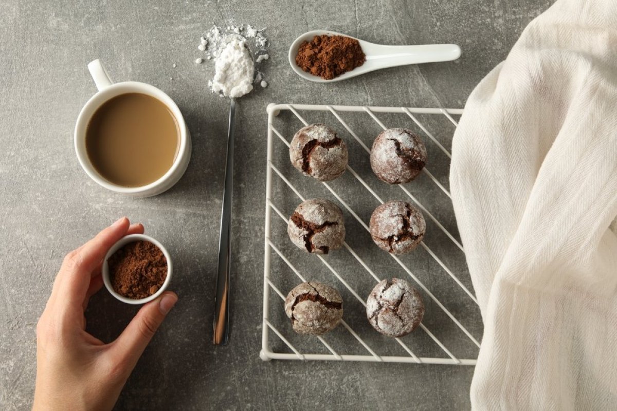 Jaja i šećer umutite u svetlu smesu. Dodajte otopljenu čokoladu sa maslacem i vanilu, zatim umešajte brašno, prašak za pecivo i so. Testo ohladite nekoliko sati, formirajte kuglice, uvaljajte ih u šećer u prahu i pecite kratko na 175 stepeni  dok ne popucaju.