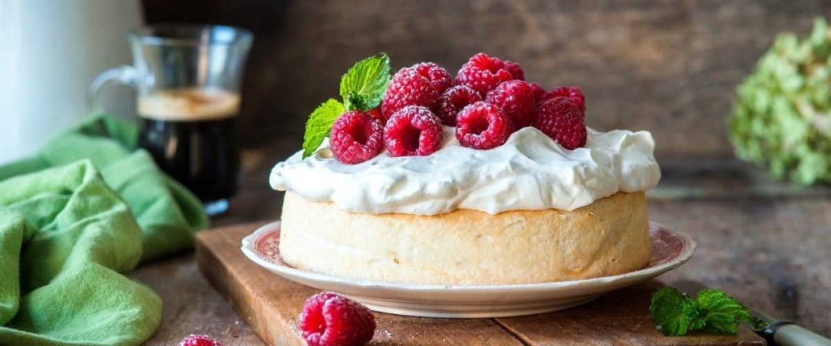 A preostali šlag pomešajte sa eurokremom, pa sipajte preko malina. Celu tortu ukrasite šlagom.