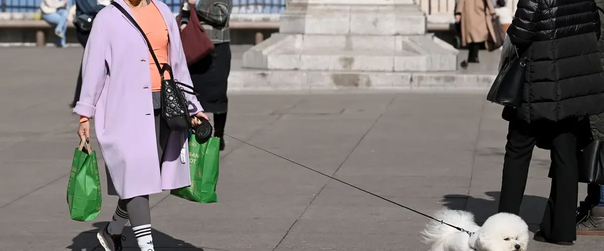 Posebnu pažnju prolaznika je privukao njezin mali pas koji je veselo koračao ispred nje na povodcu. Pahuljasti ljubimac strpljivo je pratio vlasnicu.
