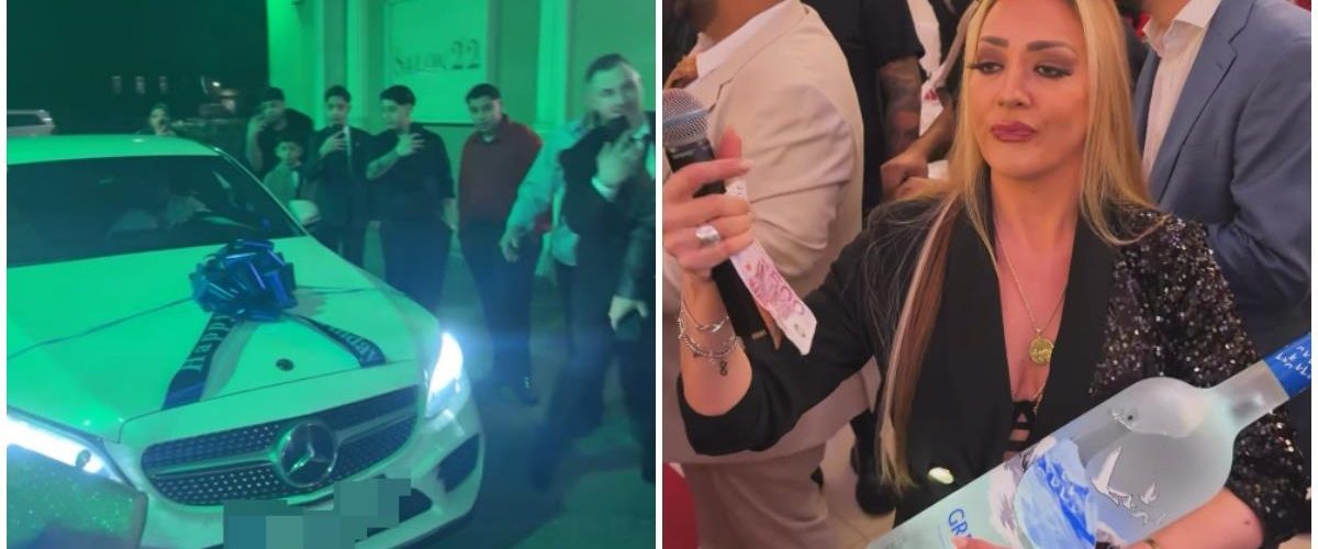 Na jednom od snimaka vidi se kako u rukama drži novčanice od 500 evra, kao i flašu votke „Grey Goose“. Slavlje je trajalo do kasno u noć, a otkrila je da je slavljenik dobio skučpocen poklon – mercedes.