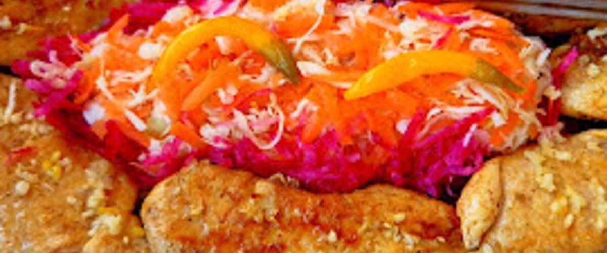 Ostaviti još minut pod poklopcem da meso upije miris luka, pa servirati na ovalnom tanjiru uz breg od svežeg kupusa, rendanu šargarepu i ivice ukrašene krupno rendanom cveklom. Uživajte u slatkom zalogaju!
