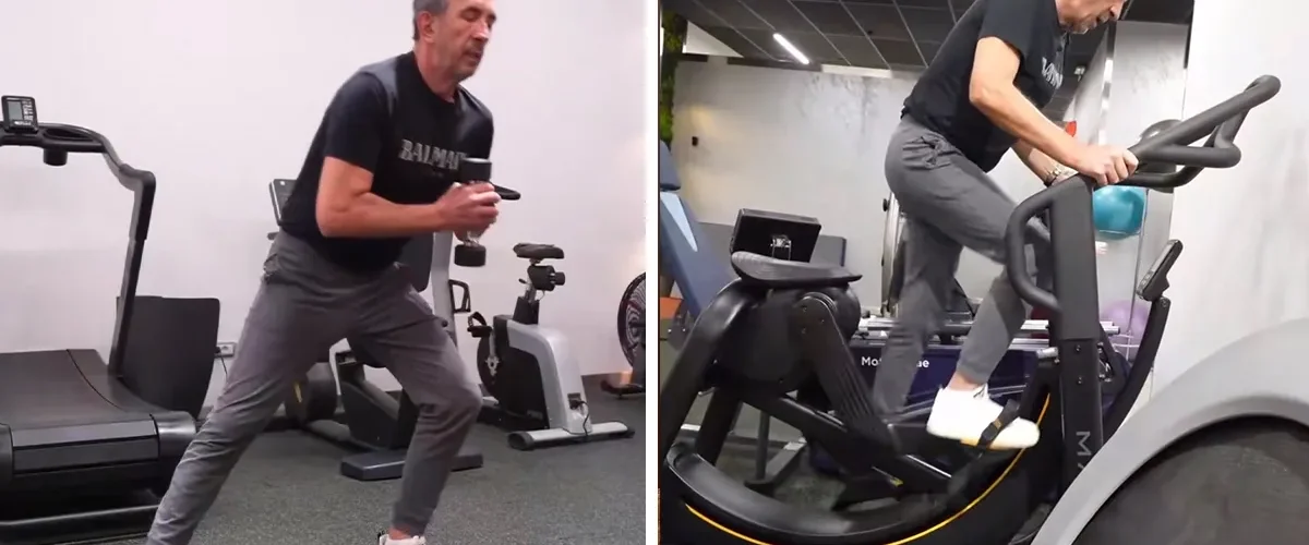 Njega su usnimili kako vežba sa tegovima, iskorak i ostale vežbe razvoteže.