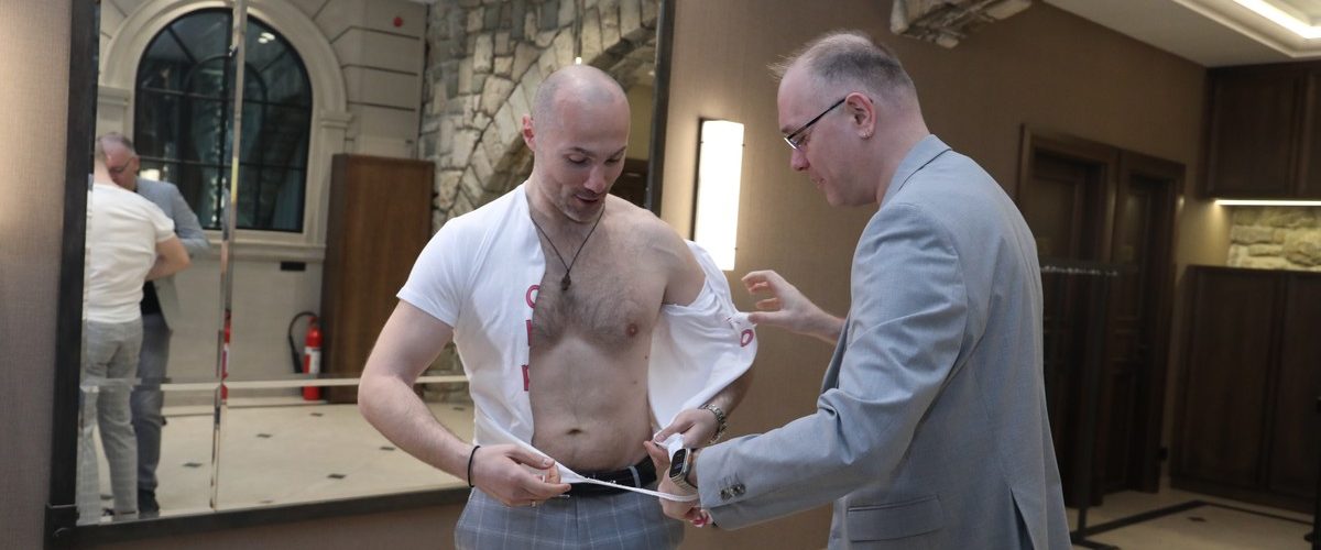 Tu su se našli baloni u beloj, roze i zlatnoj boji. Na svakom balonu je bilo ispisano ime naslednice Tare. Aleksandar se, za ovu priliku, opredelio za sive pantalone i belu košulju.