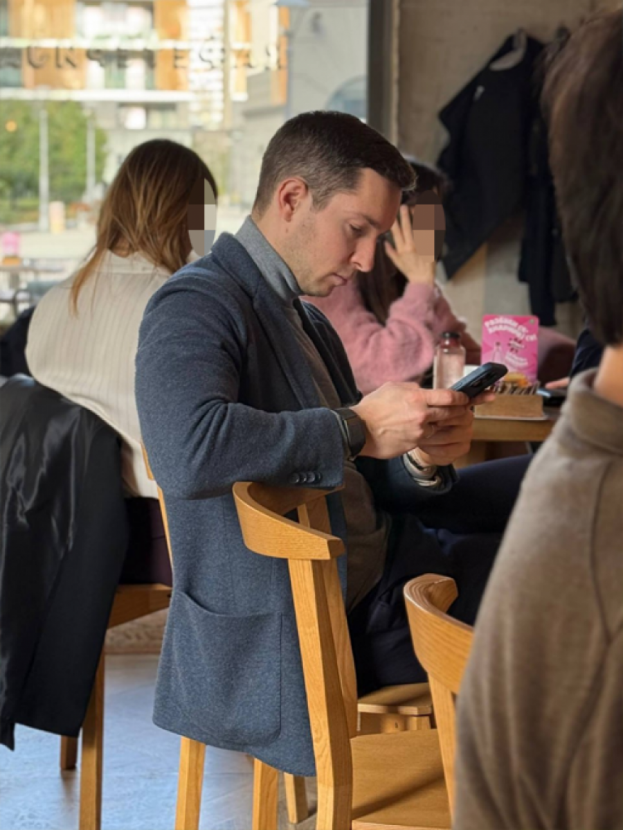Biznismena Miloša Ivanovića, brata nekadašnje teniserke Ane Ivanović, zatekli smo u centru Beograda, u jednom prestižnom naselju gde vodi svoj biznis. Uslikali smo ga dok je opušteno uživao u kafi u lokalnom kafiću, obučen u elegantnom izdanju, dok je u nekoliko navrata pregledao telefon i slao poruke. Sedeo je sam, a kasnije mu se priključio i prijatelj.