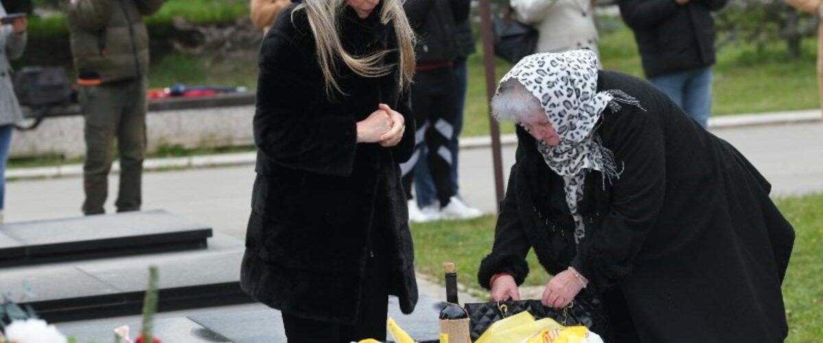 Suzana Popović, udovica Saše Popovića sa ćerkom Aleksandrom i sinom Danijelom stigla je na pomen mužu, koji je umro pre godinu dana.