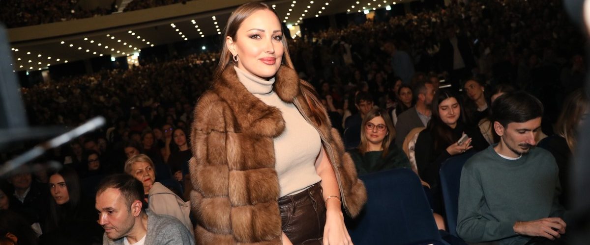 Pevačica je za ovu priliku obukla braon kožnu suknju, braon rolku i skupocenu bundu koju je samo ogrnula. Bila je vidno raspoložena, a na samom početku je spomenula koncert Saše Kovačevića na kom je bila nedavno.