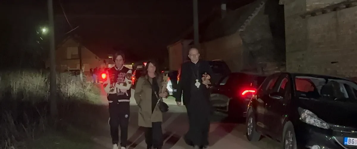 On je stigao noseći u ruci krst, dok je žena pored njega nosila sveću.