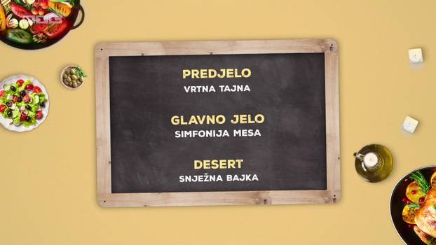 Današnji domaćin ekipi će pripremiti predjelo naziva ‘Vrtna tajna’, glavno jelo ‘Simfonija mesa’ te desert ‘Snježna bajka’.