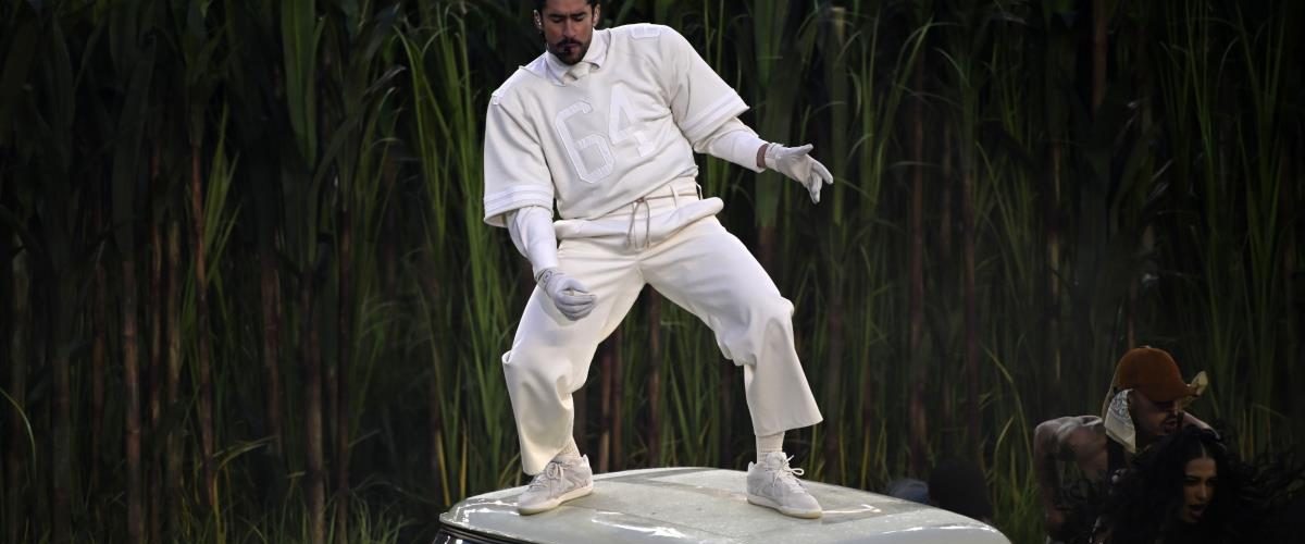 Bed Bani, rođen kao Benito Antonio Martinez Okasio, postao je prvi latino reper koji je ikada bio glavna zvezda poluvremenskog šoua u istoriji ovog događaja.