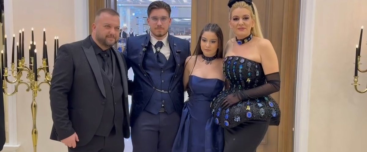 Milena, supruga Borka Radivojevića, privukla je pažnju plavom haljinom tokom proslave.